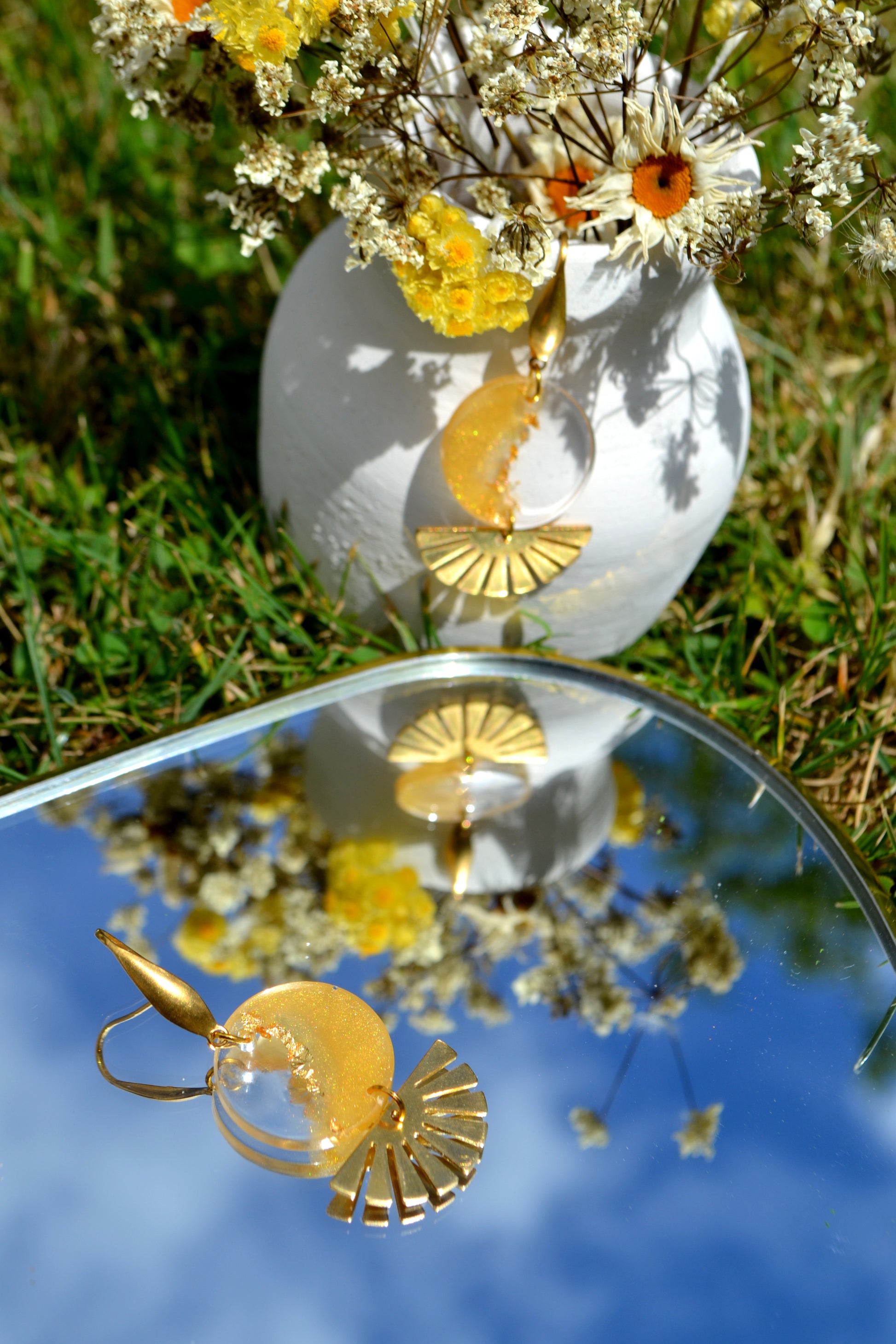 Chaque pièce étant unique et faite à la main, vous pourriez voir certaines petites variations (couleurs, marbrage, etc...) et petites imperfections (bulles d'air, lissage de finition légèrement marbré). C'est le charme de l'artisanat qui rend votre bijou incomparable !