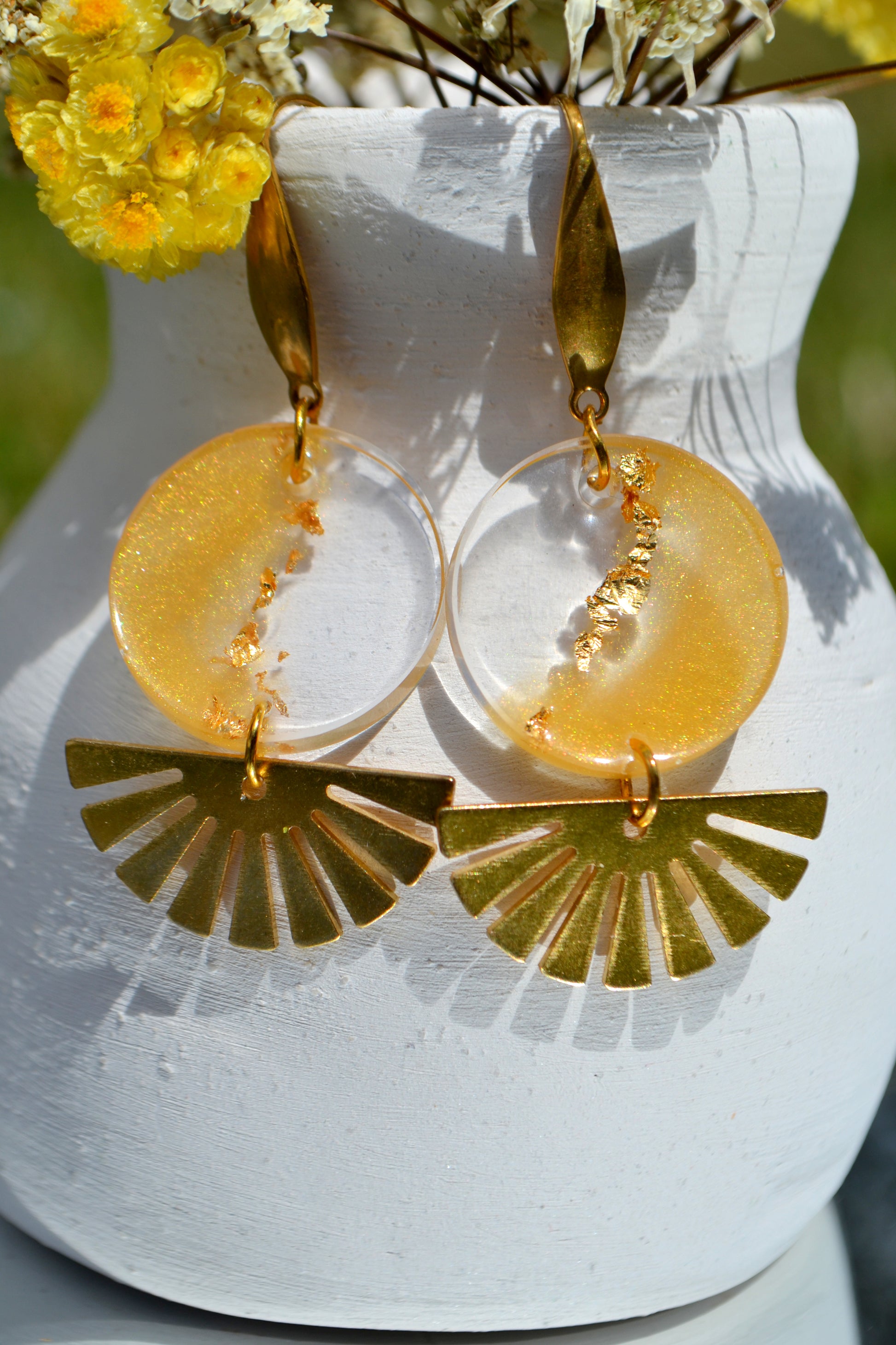 - Inclusion en résine UV et feuilles d'or