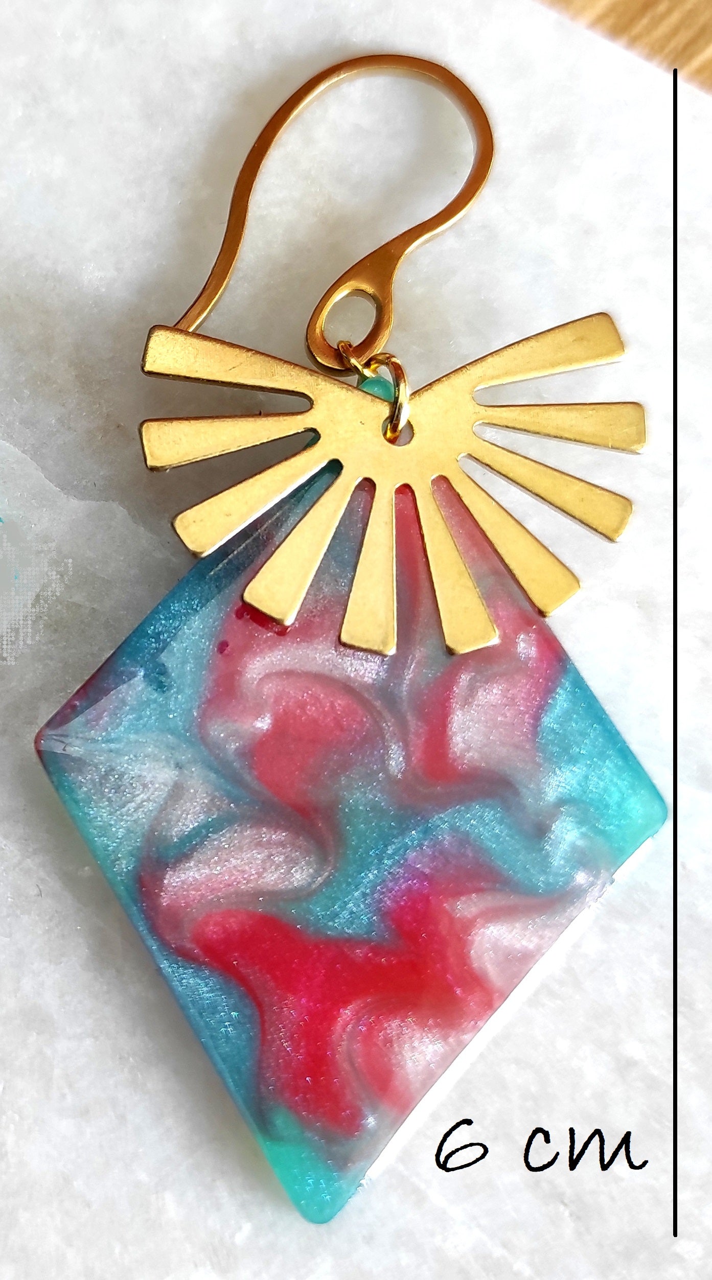 Chaque pièce étant unique et faite à la main, vous pourriez voir certaines petites variations (couleurs, marbrage, etc...) et petites imperfections (bulles d'air, lissage de finition légèrement marbré). C'est le charme de l'artisanat qui rend votre bijou incomparable !