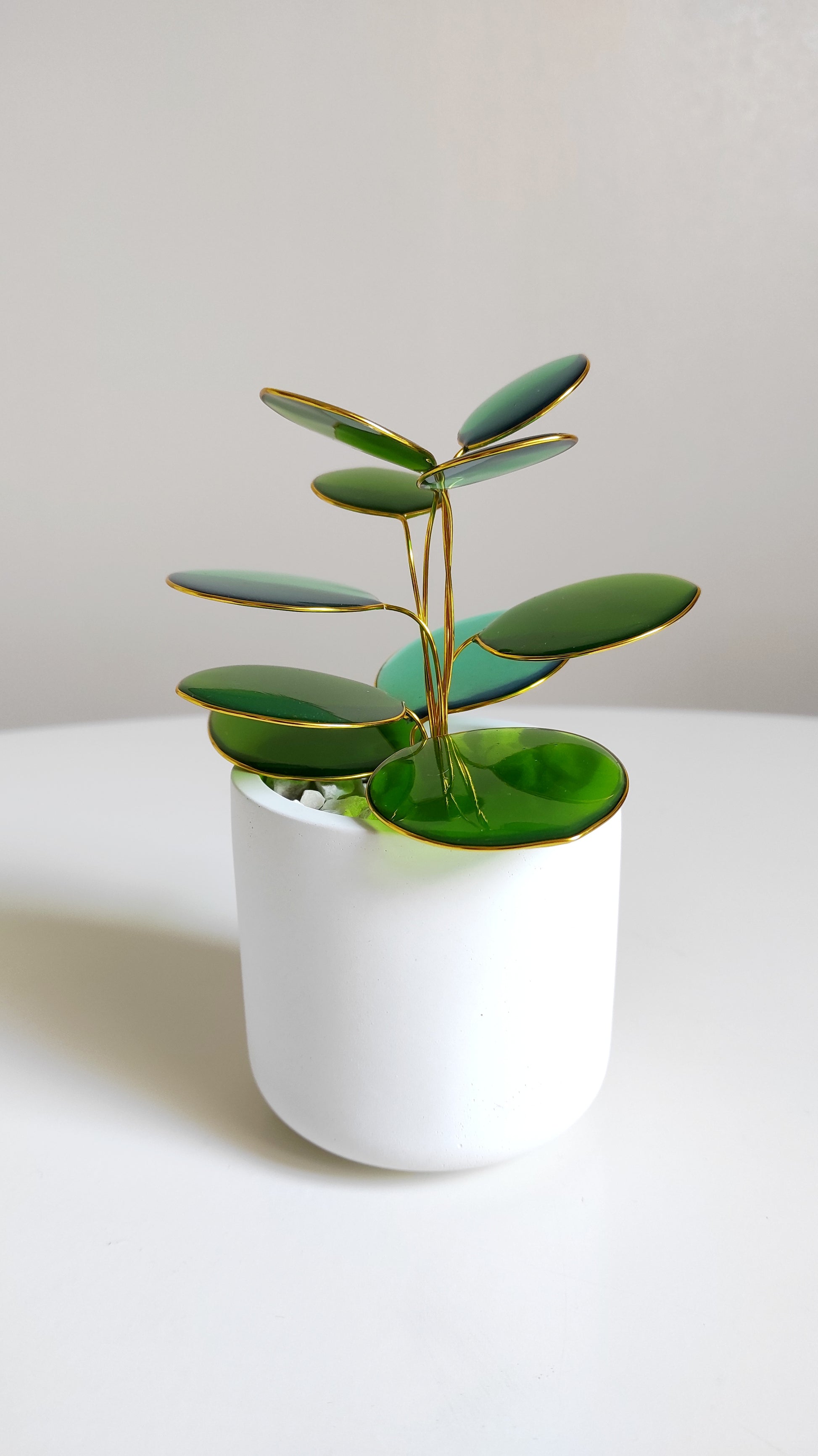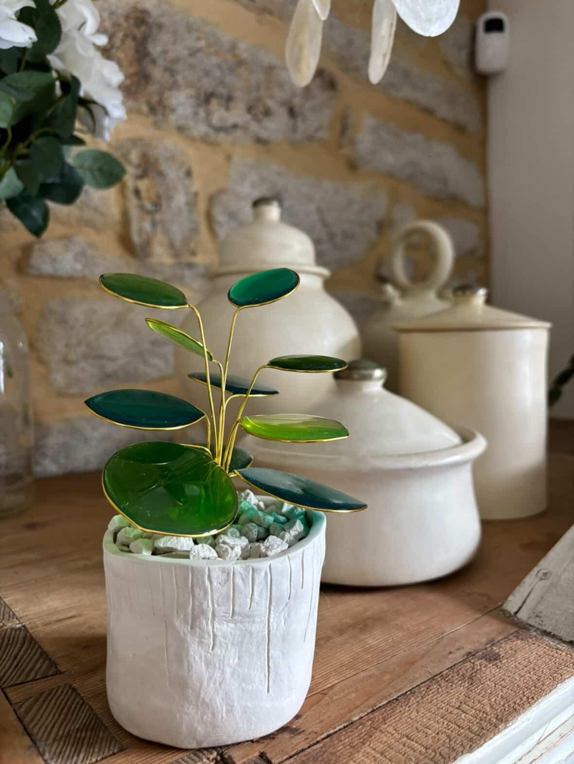 Chaque plante est unique : la forme, la teinte et les reflets varient légèrement, comme dans la nature. Vous pourriez voir de légères variations ou imperfections (bulles, finition marbrée).
